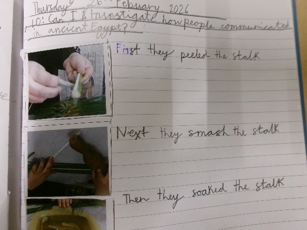 As part of our learning, we also watched a video about papyrus paper which is what the ancient Egyptians used to write on. The same plant that was used to make this paper, was also used to make various other items such as shoes and baskets.