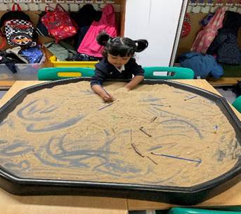 We had fun developing our literacy skills this term by mark-making in class using different media. We also worked on recognising and writing our names using lowercase letters. We have started exploring some phonics sounds by playing games during our sessions, and we have begun to practise blending the sounds. We enjoyed listening to different books about feelings, skin tone and families.