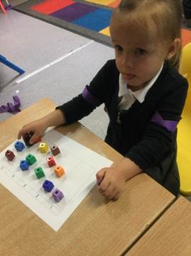 The children have been singing number nursery rhymes and learning to count objects in maths. This term, each week, we have focused on one number. We have learnt to recognise the numbers 1-5, count the amount and do the correct amount of action to match the number. During our maths, we have built resilience when learning to match amounts to numerals, count and subitise.