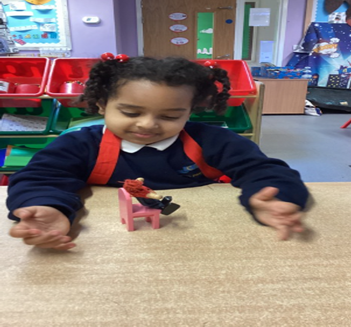 This term in maths, we have been looking at numbers from 6 to 9 and learning to recognise the numbers, write them and count objects. We learnt that the total stays the same when we separate an amount. We have also looked at positional language and describe where the teddy was in the classroom. We have developed our communication and language skills by using vocabulary to describe 2D shape in the environment. “The red triangle has 3 sides and 3 corners.”, “I can see a circle on the clock it has no corners.” We have also enjoyed a range of exploratory maths activities during our free-flow session and learnt to build our resilience and not give up.
